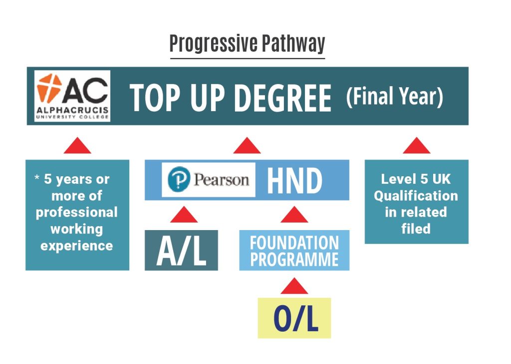 Students may study the programme at YGC Sri Lanka and, upon completion, will be awarded the Bachelor of Business (Top-Up) directly from Alphacrucis University College, Australia.